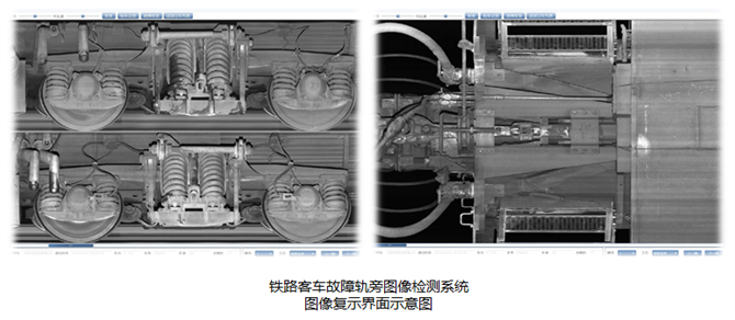 該系統(tǒng)是鐵路車輛運行安全監(jiān)控系統(tǒng)的重要組成部分,利用軌旁安裝的高速相機(jī),檢測運行客車走行部、轉(zhuǎn)向架、制動部件、車端連接及車體下部懸吊件等可視部位圖像,實時傳輸至室內(nèi)監(jiān)測終端進(jìn)行分析,并利用人工檢測發(fā)現(xiàn)運行車輛異常情況并報警。